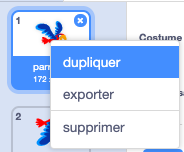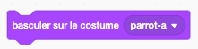 - Sélectionnez le bon costume dans les options du bloc: «« Basculer sur le costume X »afin qu'il respecte le sens du déplacement et le battement des ailes.