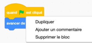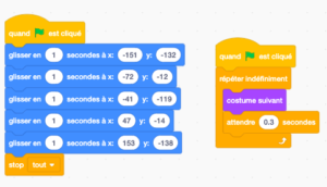 - Il ne faut pas oublier de mettre le bloc « Stop tout » au premier script afin d'arrêter tous les scripts.