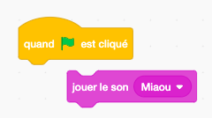- Ajouter au chat Scratch un son de chat et cliquer sur le drapeau vert pour le faire jouer.