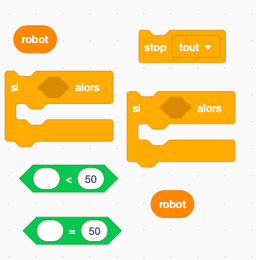 L'animateur présente les blocs suivants aux élèves. Ils expliquent leur fonctionnement.