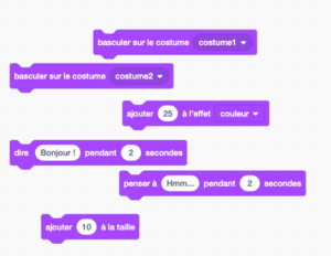 - Les élèves expérimentent et trouvent les bonnes séquences.