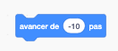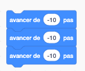 - Reculer de plusieurs pas, répétition. On découvre la répétition du bloc [reculer de - 10].